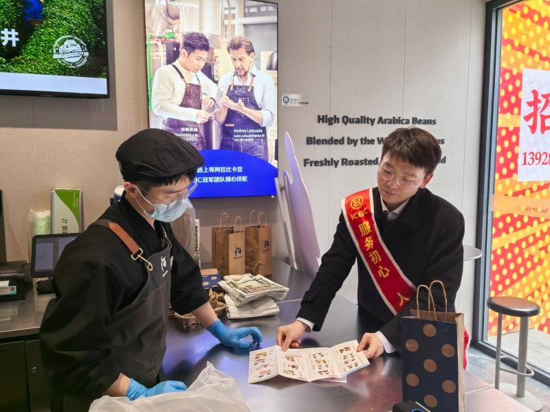 宣讲团队还主动走访周边商户,围绕合法经营、诚信纳税、反洗钱义务等核心内容,用平实语言解读宪法及相关金融法规。针对商户普遍关心的资金结算安全、账户规范管理等问题提供专项指导,警示非法集资、虚假交易等风险,引导商户牢固树立“尊法学法守法用法”的合规经营理念。同时,结合商户实际需求,积极推介“惠商贷”“经营快贷”等适配普惠金融产品与服务,助力商户便捷获得金融支持,实现稳健发展。